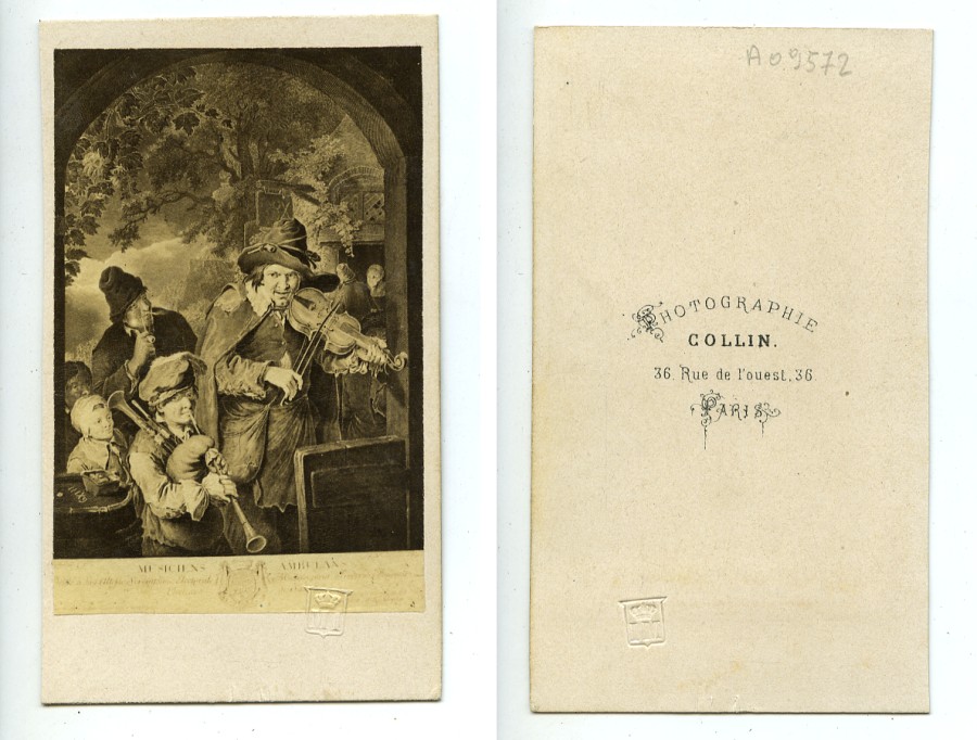 France J.G. Wille Strolling Musicians Gravure Old CDV photo Collin 1870