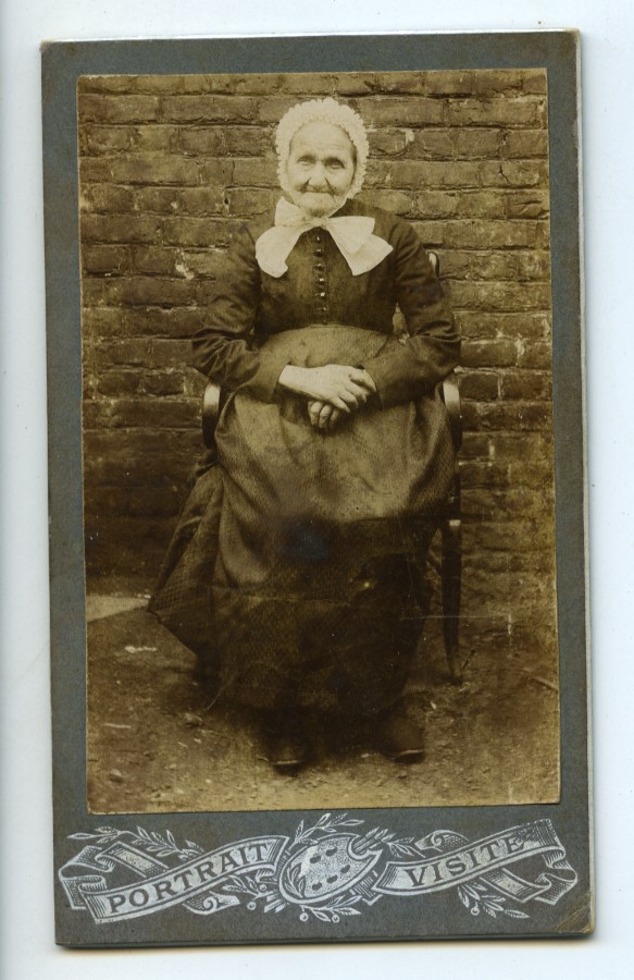 France Older Woman posing outside wearing Bonnet Old CDV photo 1900