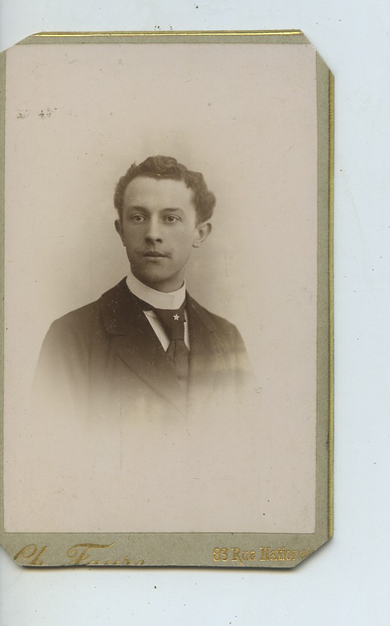 France Lille Young Man Portrait Tiprez Dervaux Old CDV photo Faure 1900