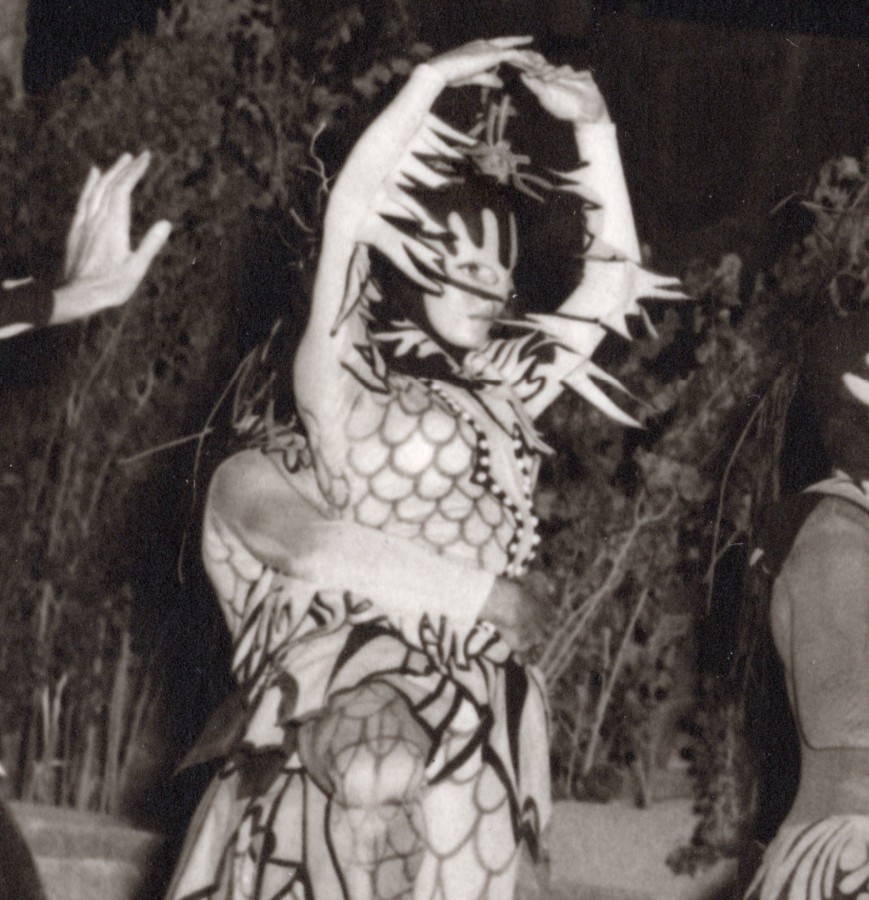 Geneviève Page-Armide, Nathalie Nerval - Oriane et Jacques Dacqmine - Renaud, interprétant sur la scène du temple de Bacchus 'Renaud et Armide' de Jean Cocteau.