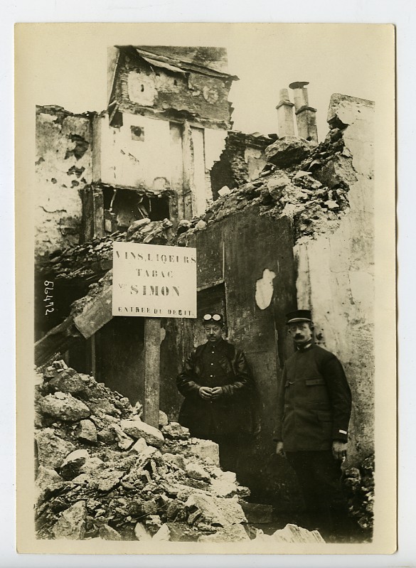 France WWI Front de Guerre Nord Commerce Alcool Tabac en Ruines Ancienne Photo Meurisse 1915