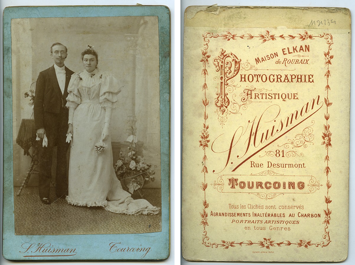 France Tourcoing Couple Portrait Wedding Old Cabinet Card Photo Huisman 1900 #2