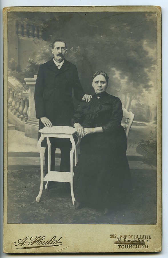 France Tourcoing Couple Portrait in Studio Old Cabinet Card Photo Hulot 1900