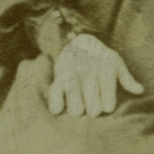 Albumen print mounted on card, good condition, some creases and stains.