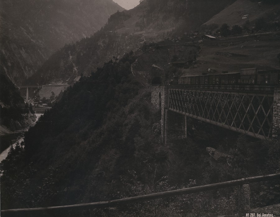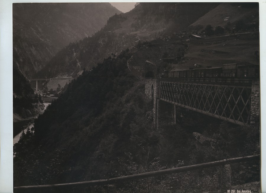 Switzerland near Amsteg Gotthard railway bridge Old Photo Schroeder 1890