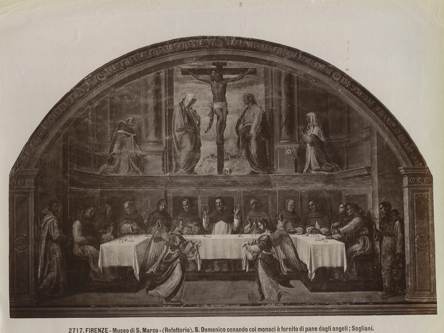2717. Firenze. Museo di S. Marco. (Refettorio). S. Domenico cenando coi monaci è fornito di pane dagli angeli; Sogliani .