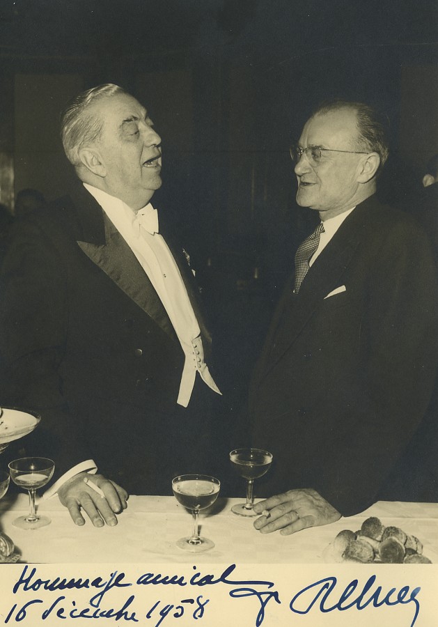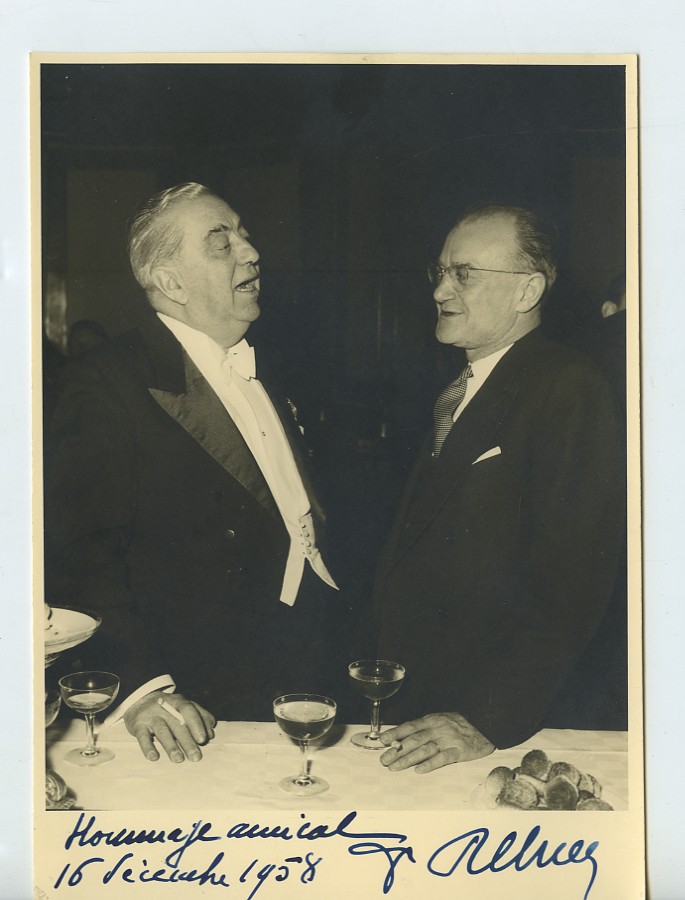 France Politique 2 Hommes a un diner officiel? Ancienne Photo dedicacée 1958