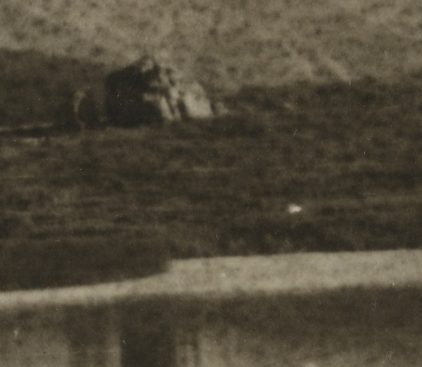 Silver Print sepia toned, fair condition, light creases, glue and mount residue on back, tear in center of the photo
