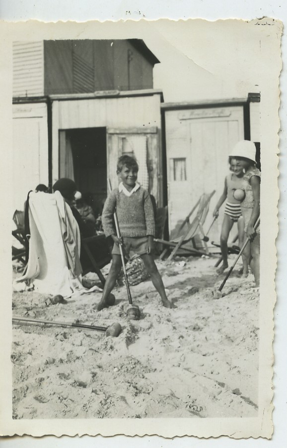 France Seaside Children Playing croquet? On sand beach Old snapshot Photo 1950