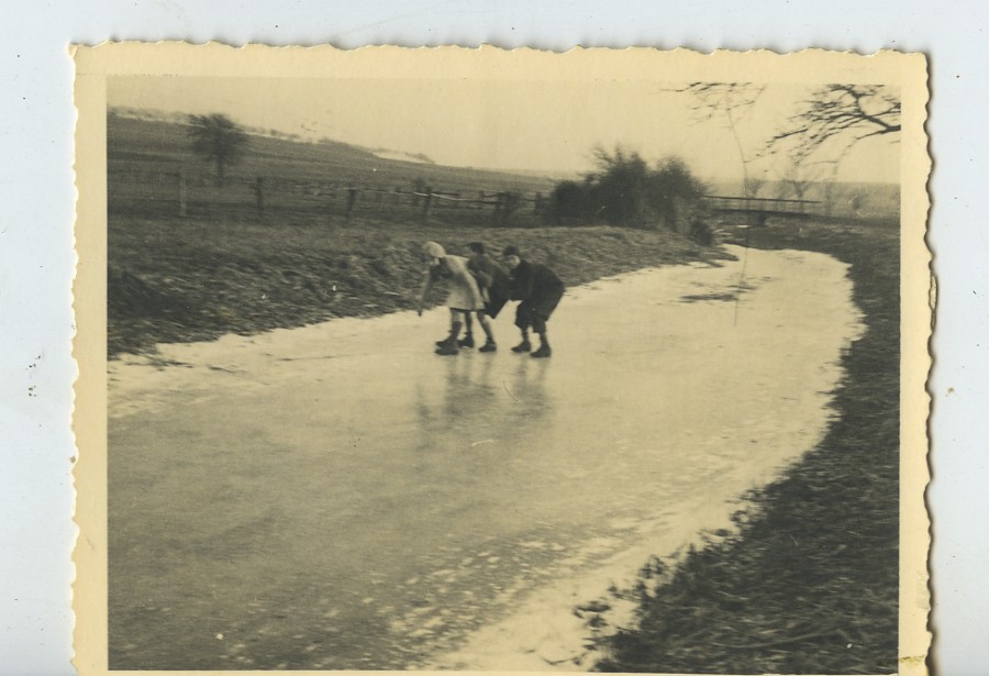 France Children ice skating frozen river Countryside Old snapshot Photo 1950 #2