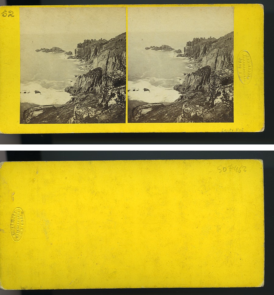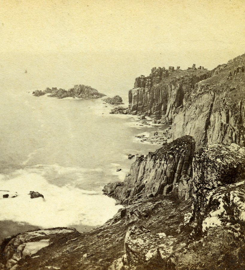 United Kingdom Cornwall Land's End Coast Old CR Lobb Stereoview Photo 1865
