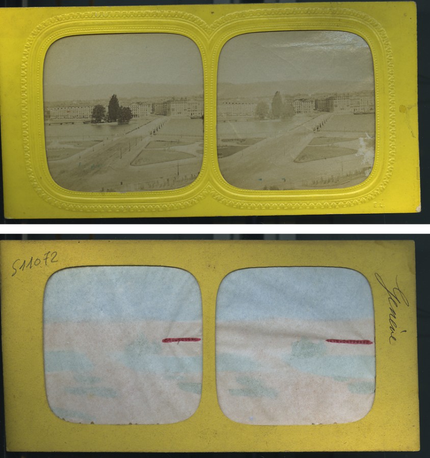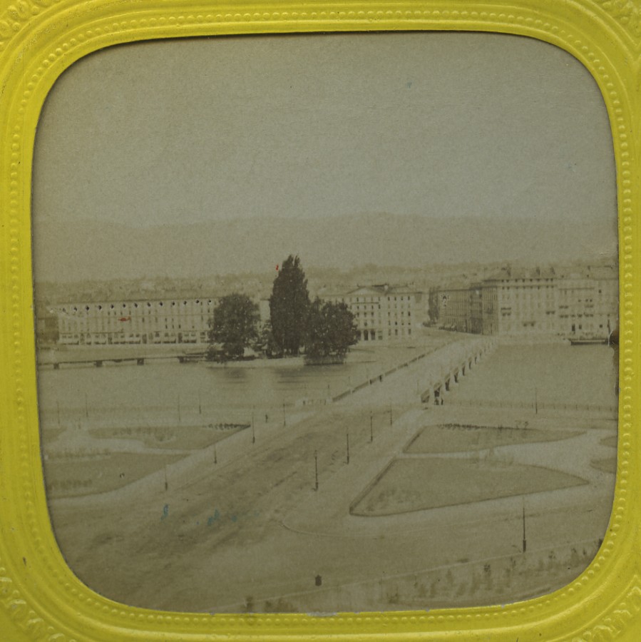 Suisse Geneve Pont Ancienne Stereo Photo Polyramique E.L. 1865