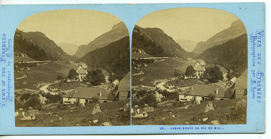 France Pyrenées Gabas route du pic du Midi ancienne Photo Stereo Lamy 1867