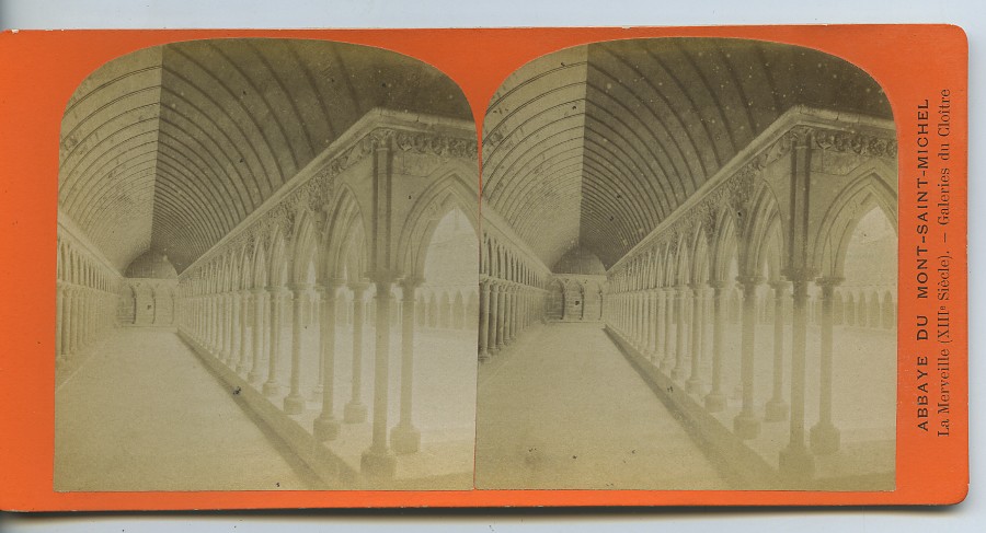 France Abbaye du Mont Saint Michel Galerie du Cloitre Ancienne Photo Stereo 1890
