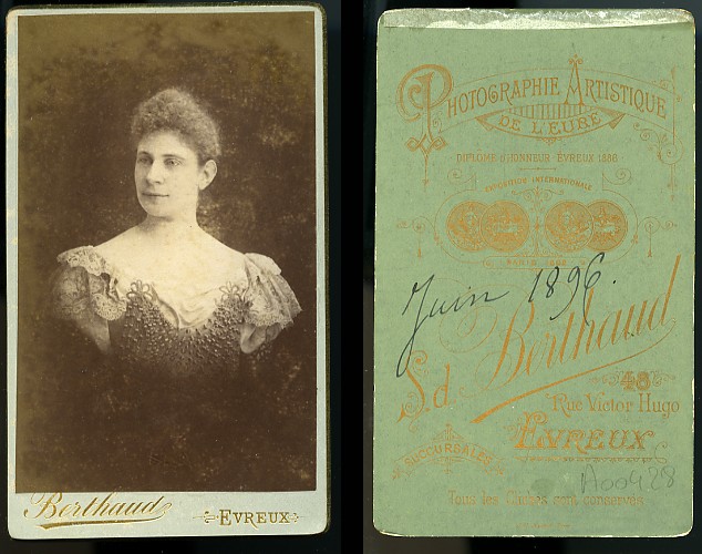 Femme Portrait 27000 Evreux Ancienne CDV Photo Berthaud mars 1881