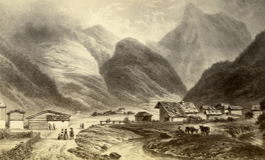 Switzerland View of Gemmi Mountain Village Old CDV Photo of Gravure 1865