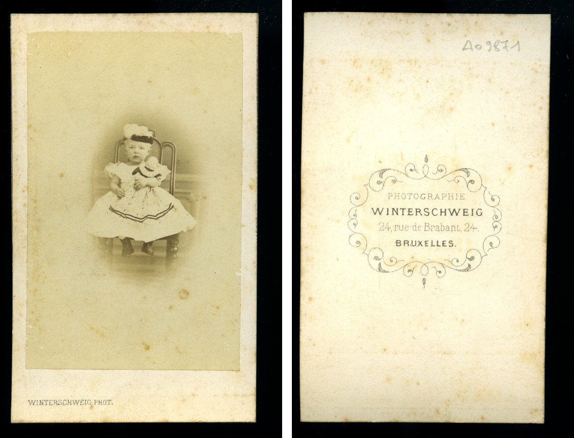 Belgium Brussels Baby Toddler holding Doll Old CDV photo Winterschweig 1870