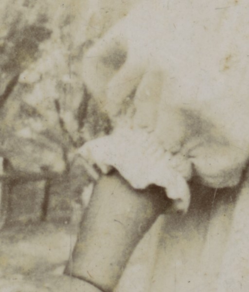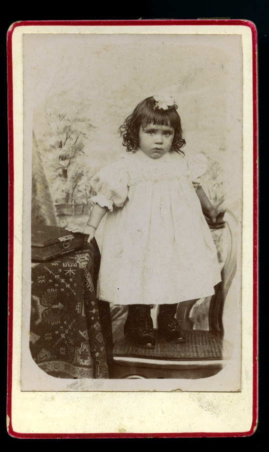 France Toddler girl in nice dress and bow by photo album Old CDV photo 1890