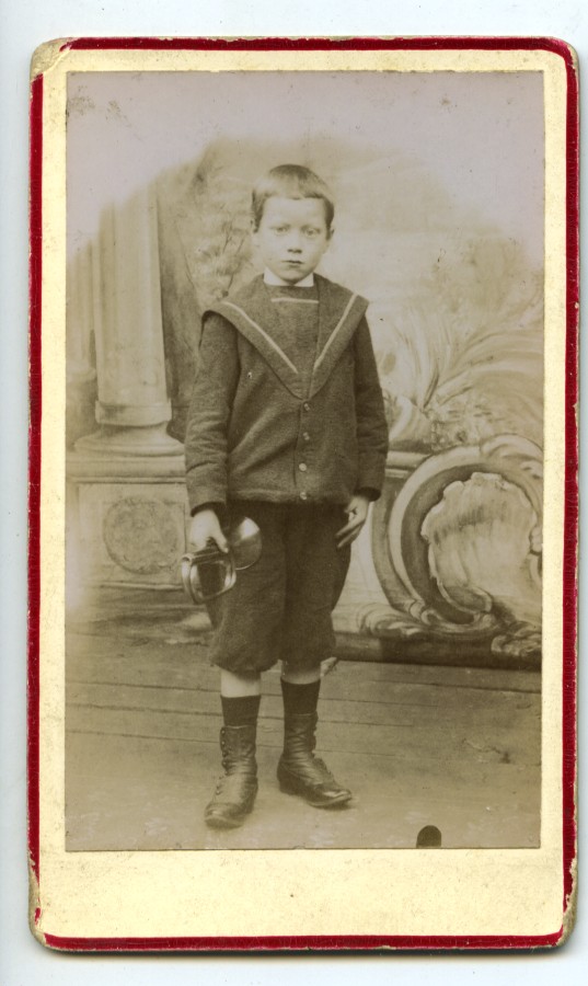France Young Boy posing with a Bugle? Old CDV photo 1890