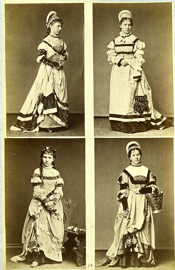 16th century European French Women Fashion Costumes Old Photo Calavas 1890