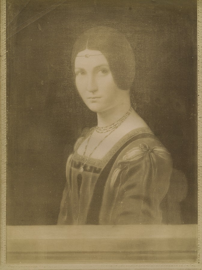 Louvre Museum Painting: La Belle Ferronnière by da Vinci Old Photo Pamard 1890