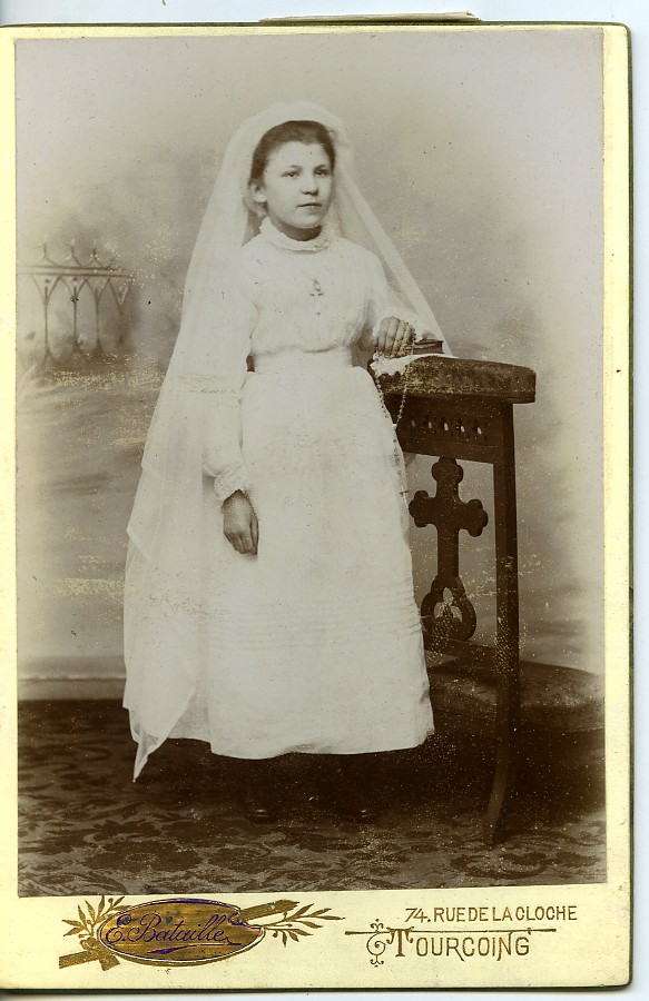 France Tourcoing Jeune Communiante Premiere Communion Ancienne Carte Cabinet Photo Bataille 1900