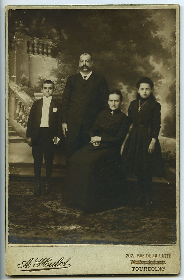 France Tourcoing Family posing in Studio Old Cabinet Card Photo Hulot 1900