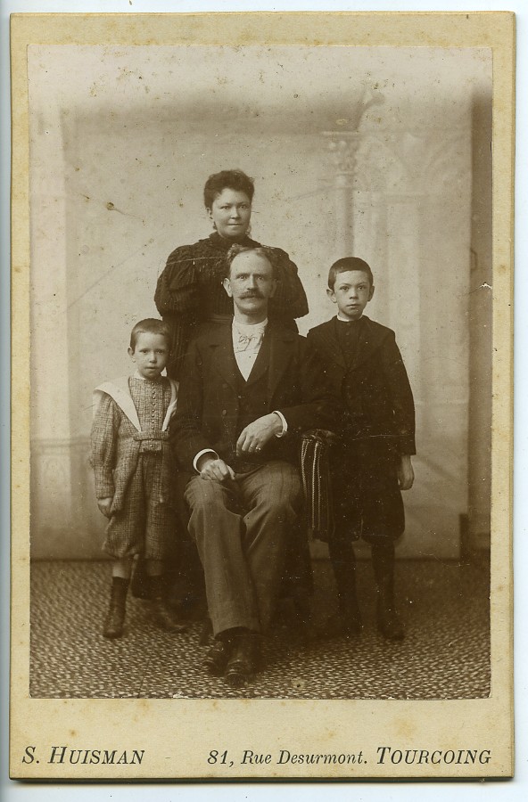France Tourcoing Family posing in Studio Old Cabinet Card Photo Huisman 1900
