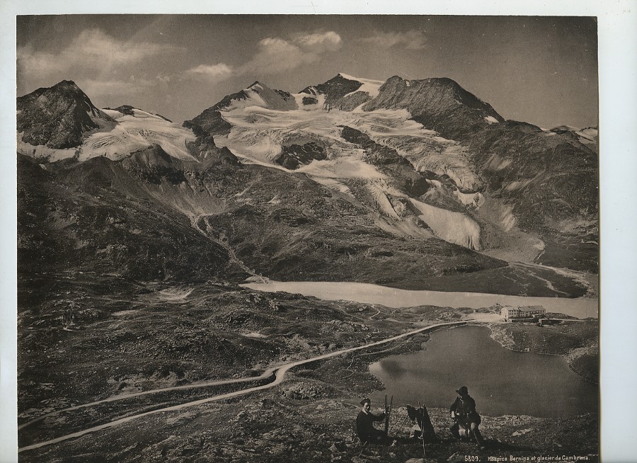 Switzerland Bernina Hospice & Cambrena Glacier Old Photo Schroeder 1890