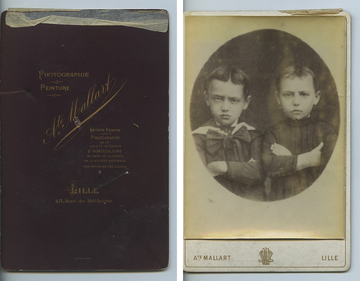 France Lille Portrait Two Young Children Old Cabinet Photo Mallart 1890
