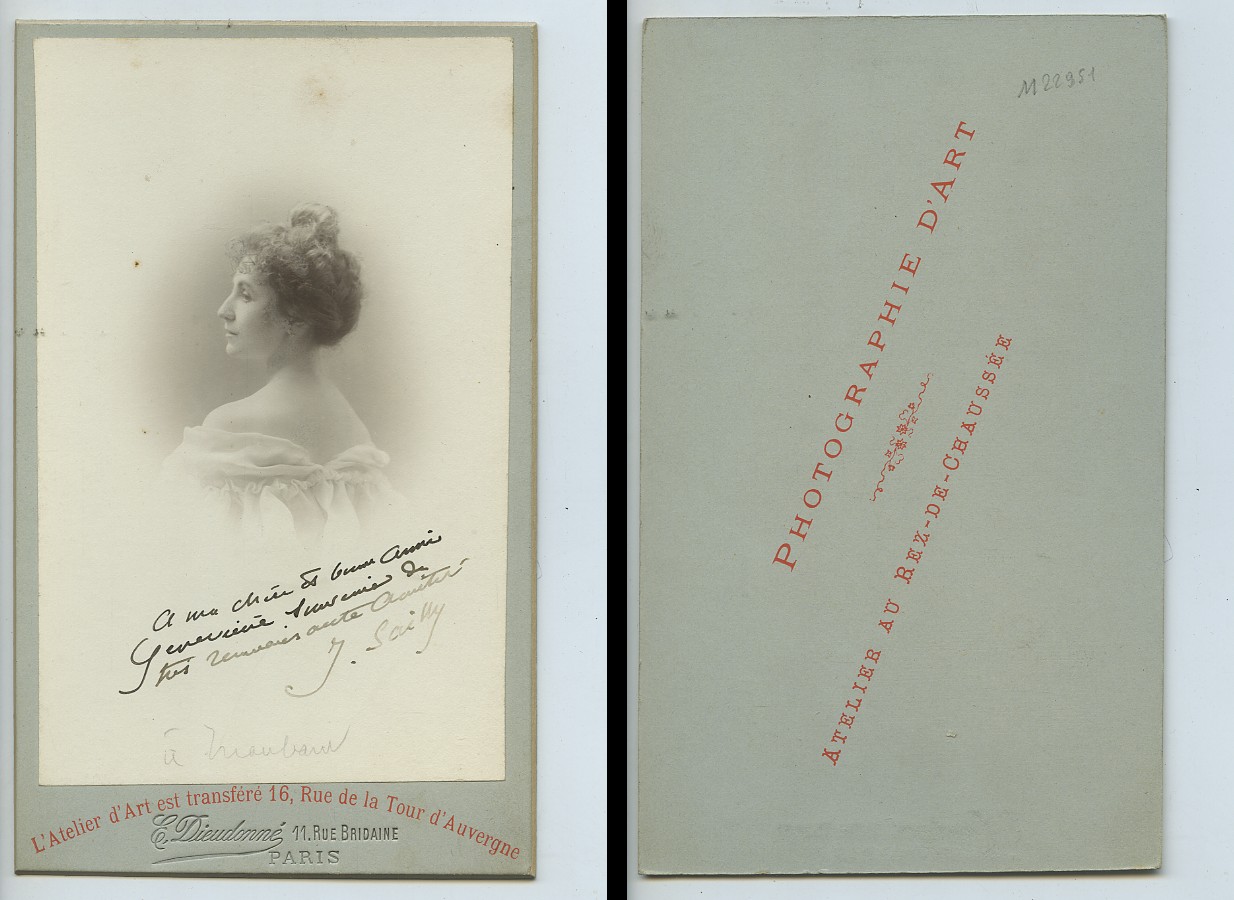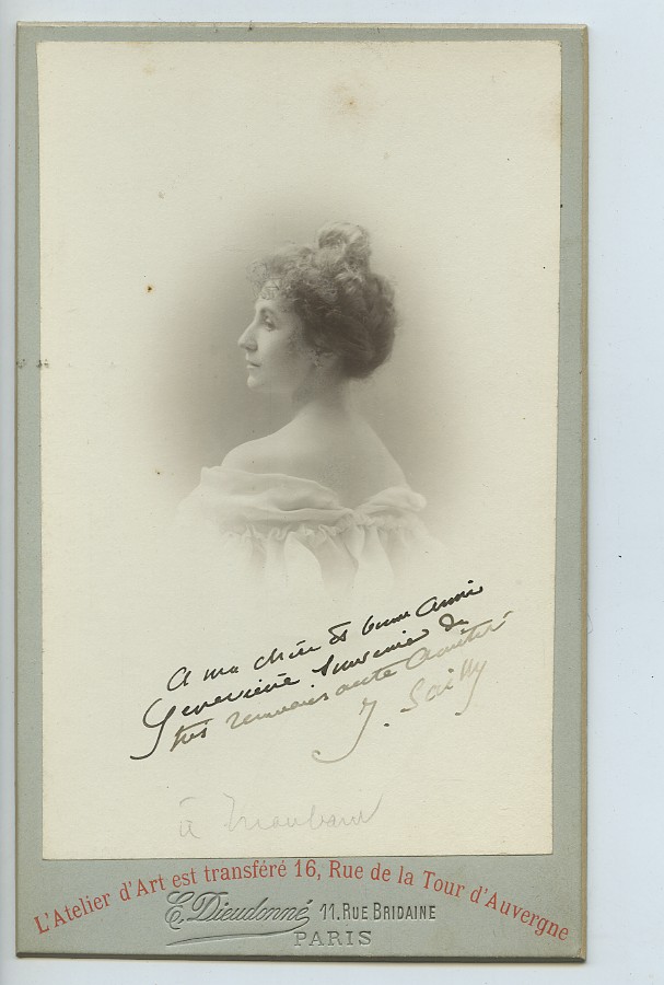 J Sailly Actress? Theatre Autograph to Genevieve Old Cabinet card Dieudonné 1890