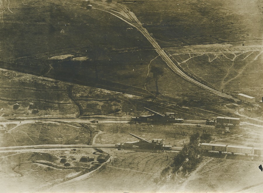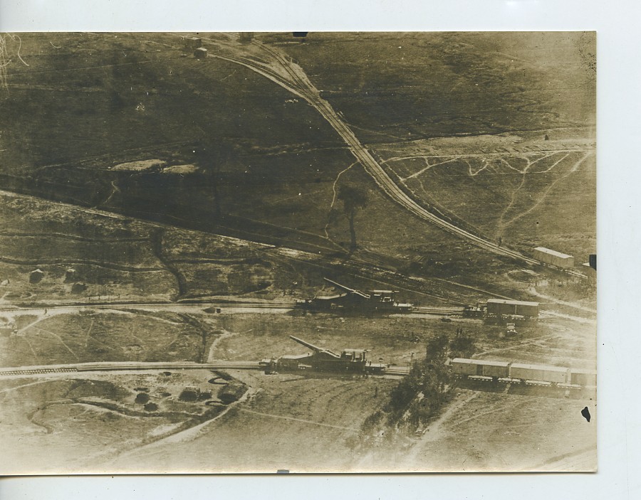 France WWI canons lourds sur rails ancienne photo aerienne vers 1916