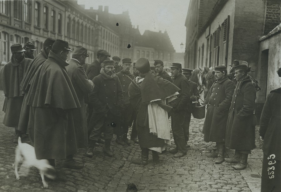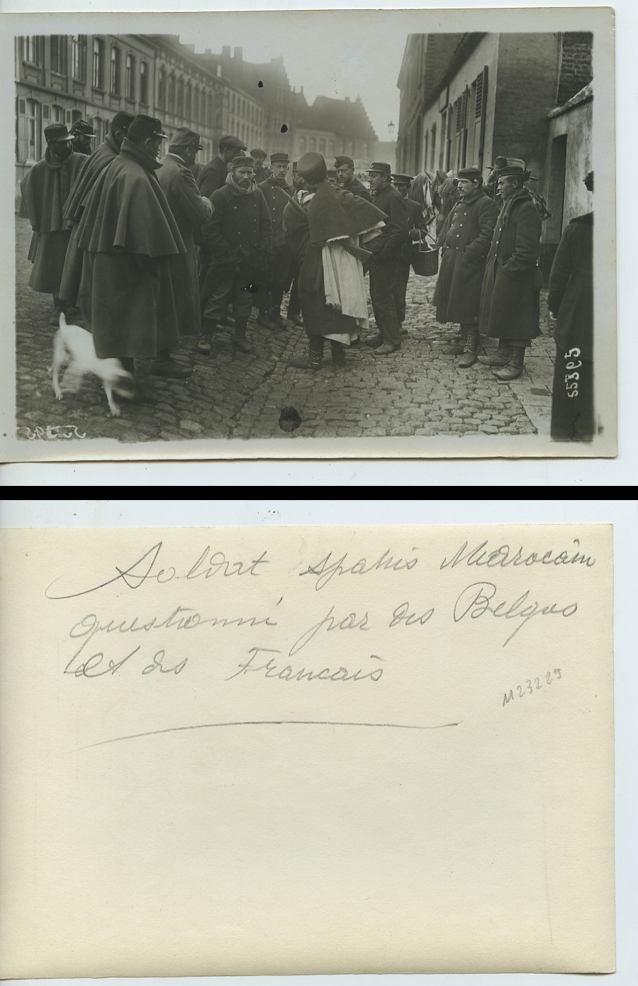 France ou Belgique WWI Spahi Marocain questionné par des Belges et des Français Ancienne Photo 1914-1918