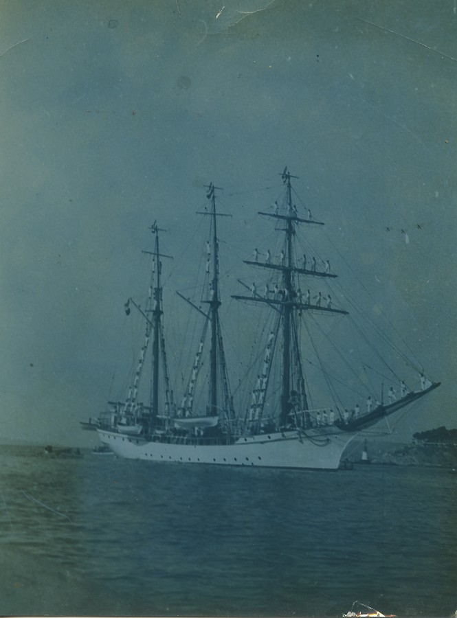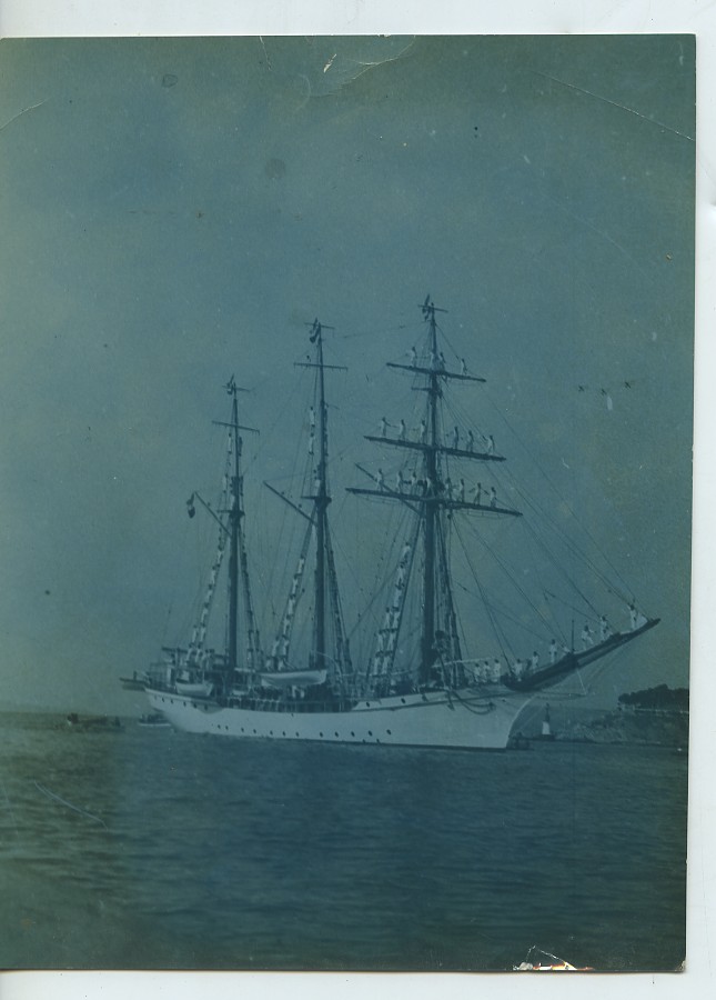 Yugoslavia sailboat Jadran arriving in Split? Croatia Old Photo tinted 1933