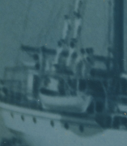 Silver Print blue tinted, fair condition, tear and creases on the edges