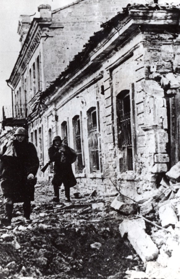Crimea Kerch WWII Romanian Soldiers Street Ruins old Photo 1940's