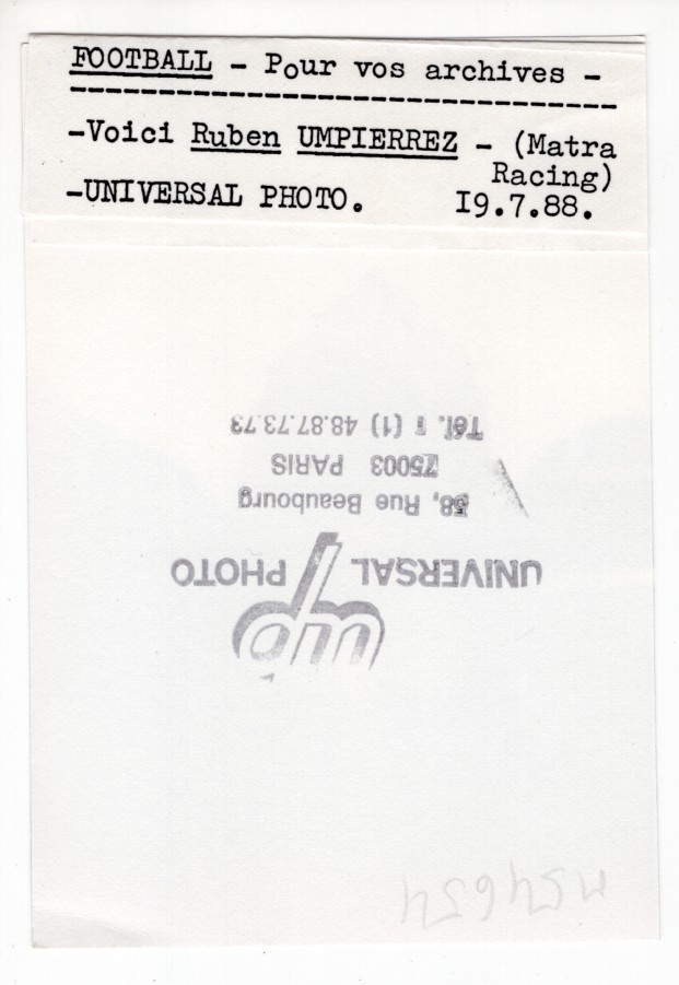 France Football Soccer Player Rubén Umpiérrez Matra Racing Universal Photo 1988