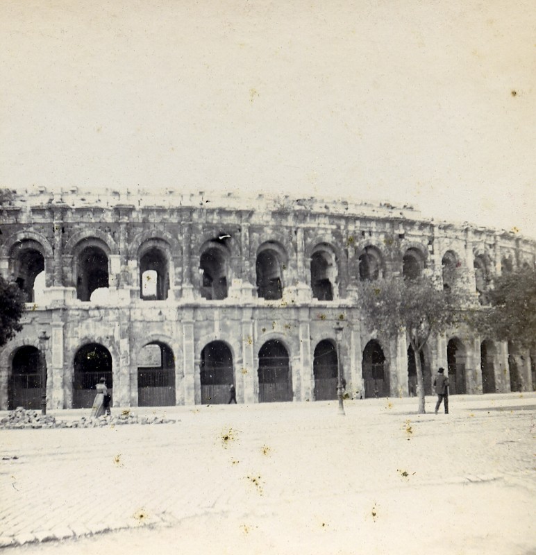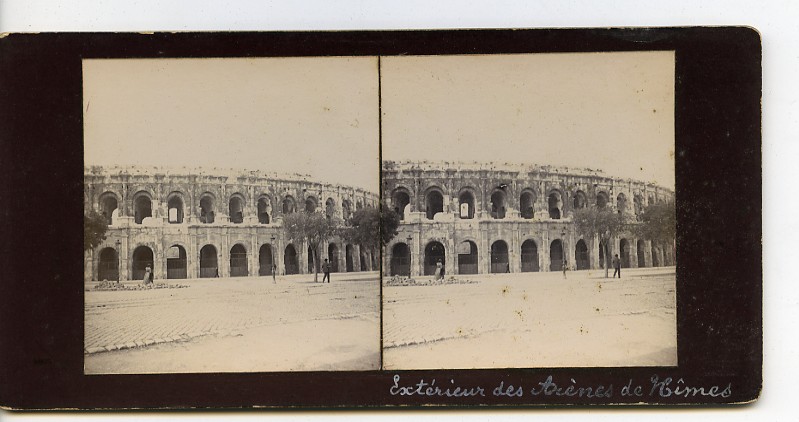 France Nimes Exterieur des Arenes ancienne photo stereo Stereoscope 1900