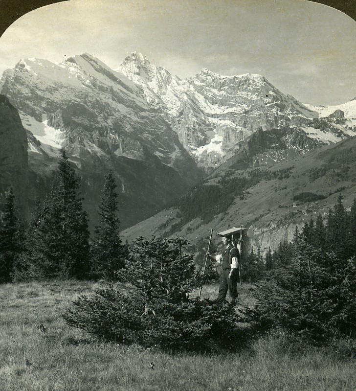 Switzerland Swiss Farmer Breithorn Alps Old Stereo Photo Stereoview ASC 1900