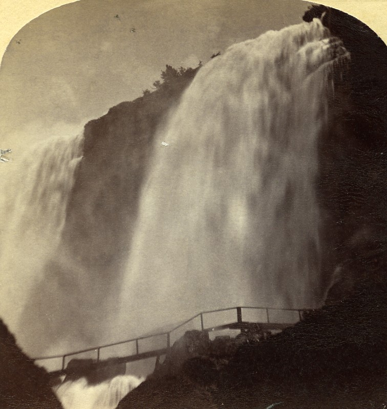 USA Canada Chutes du Niagara Cave of the Winds Ancienne Photo Stereo Curtis 1880