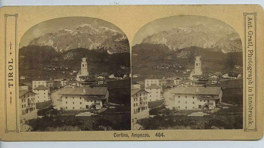 Italie Dolomites Cortina d'Ampezzo ancienne photo stereo Gratl 1880