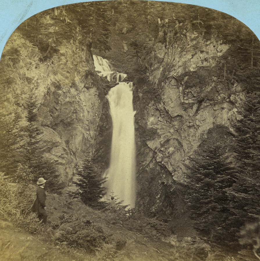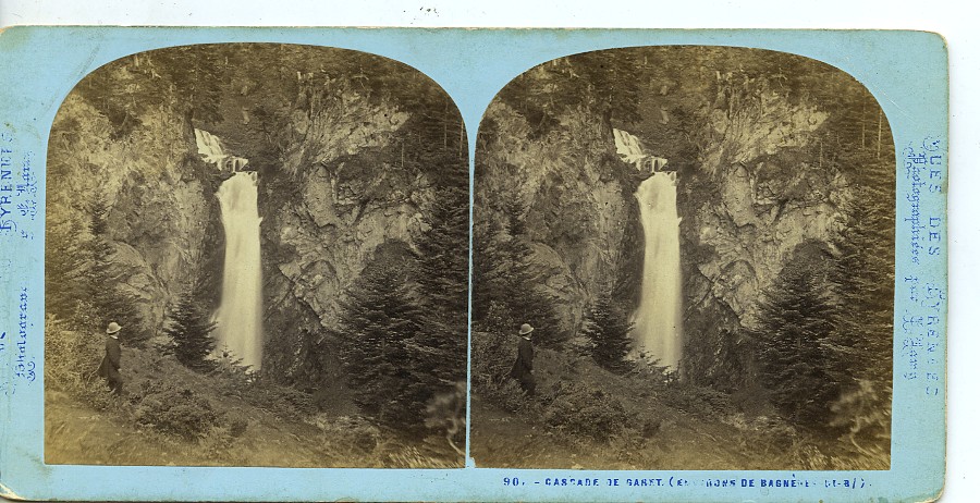 Pyrenees Waterfall cascade de Garet near Bagneres Old Stereo photo Lamy 1867