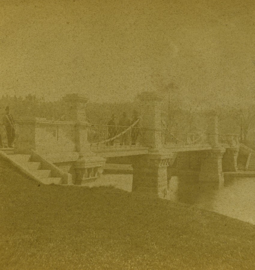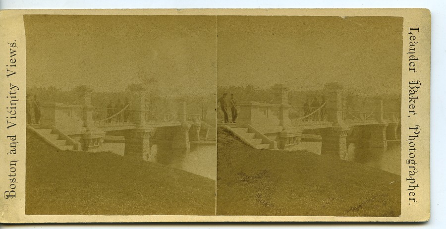 USA Boston Public garden bridge Old Stereo photo Baker 1870