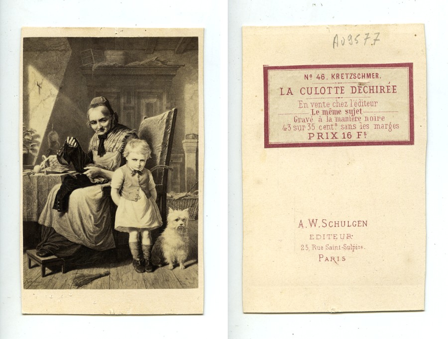 France Kretzschmer tableau 'La culotte déchirée' ancienne Photo Schulgen CDV 1870