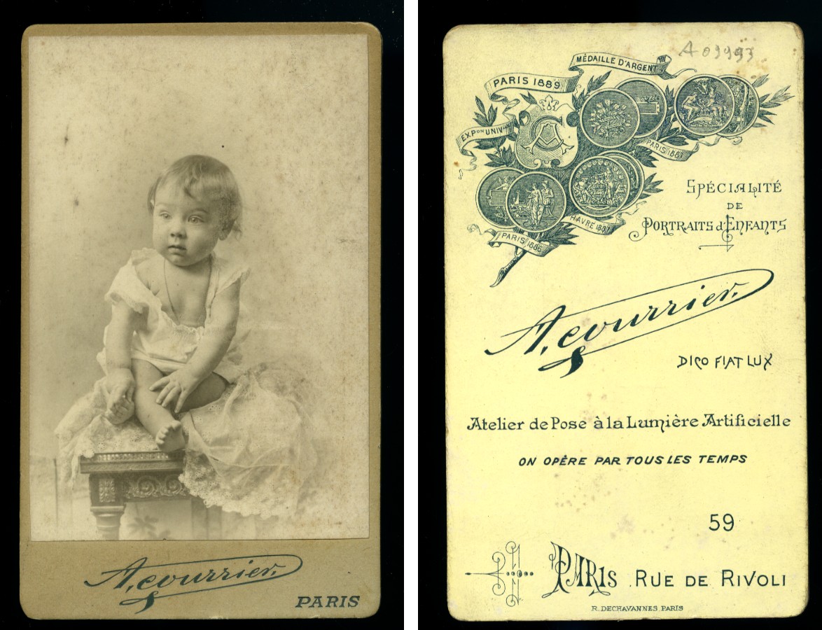 France Paris Baby Toddler Portrait Old CDV photo Albert Courrier 1890 #2
