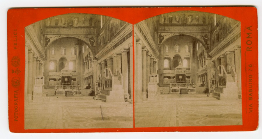Italie Rome Interieur d'Eglise Ancienne Photo Stereo Felici 1870