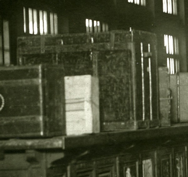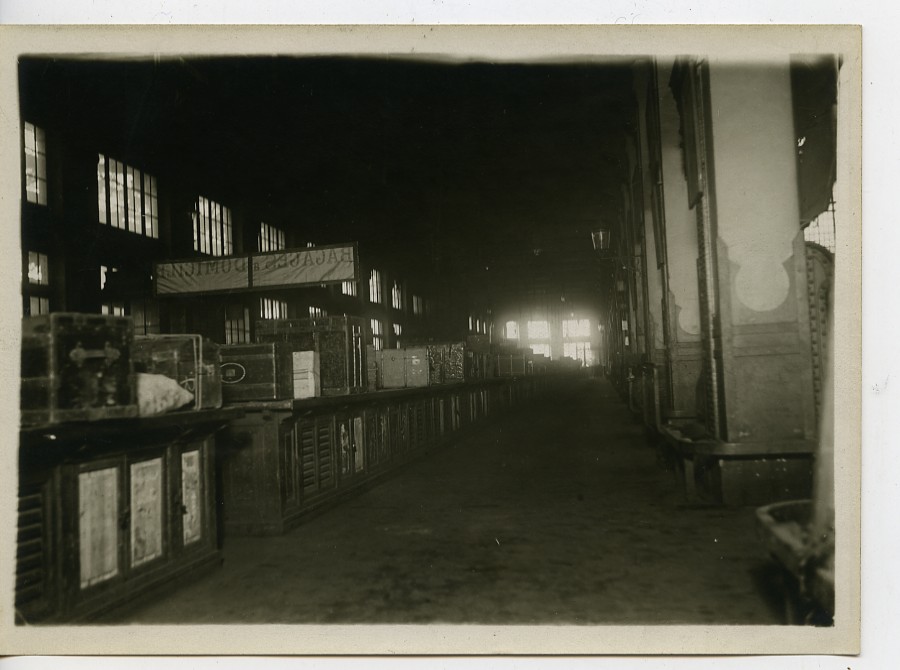 Vintage Charles Trampus Studio Photo. French text glued on reverse: La gréve des chemins de fer tend à se généraliser. La salle des bagages de la gare de Lyon ------------------------------