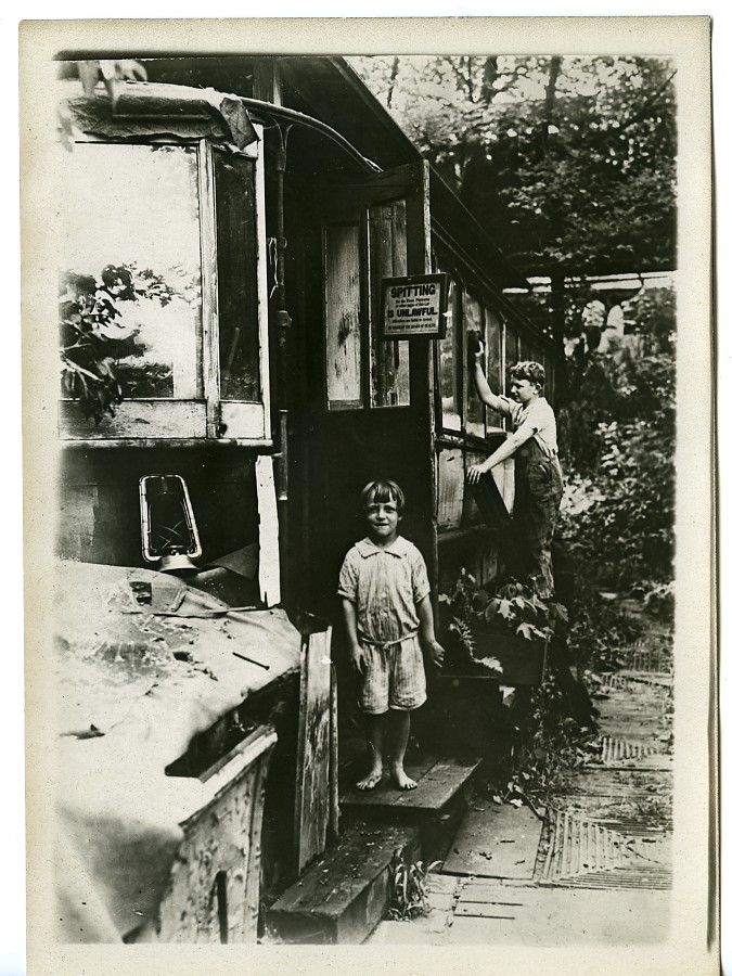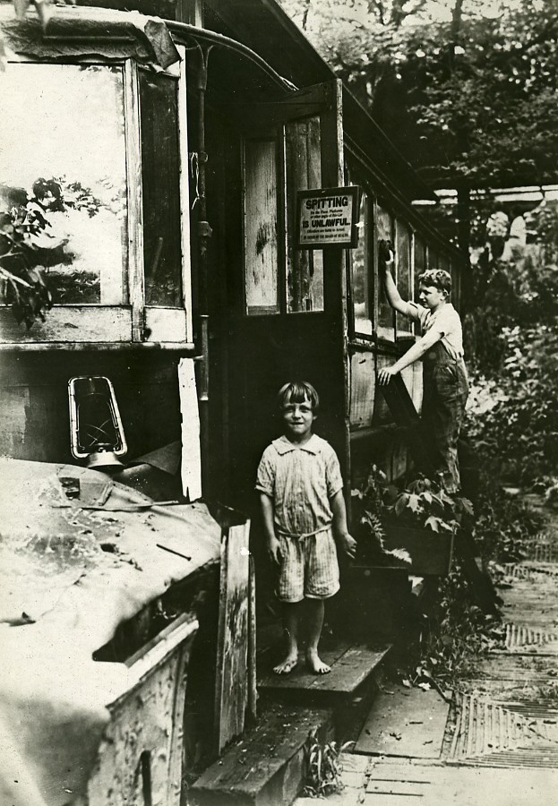 USA Train Car turned into Country House Thomas O'Mara Old Photo Trampus 1920