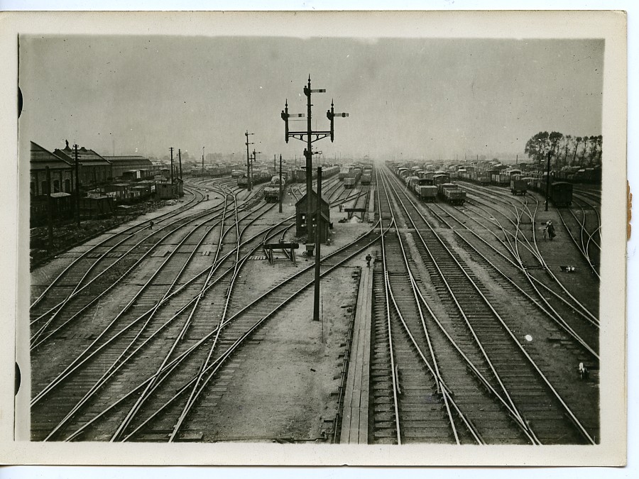 Vintage Charles Trampus Studio Photo. French text glued on reverse: La grève des cheminots anglais revêt tous les jours un caractere plus grave. Les grévistes ---------------------