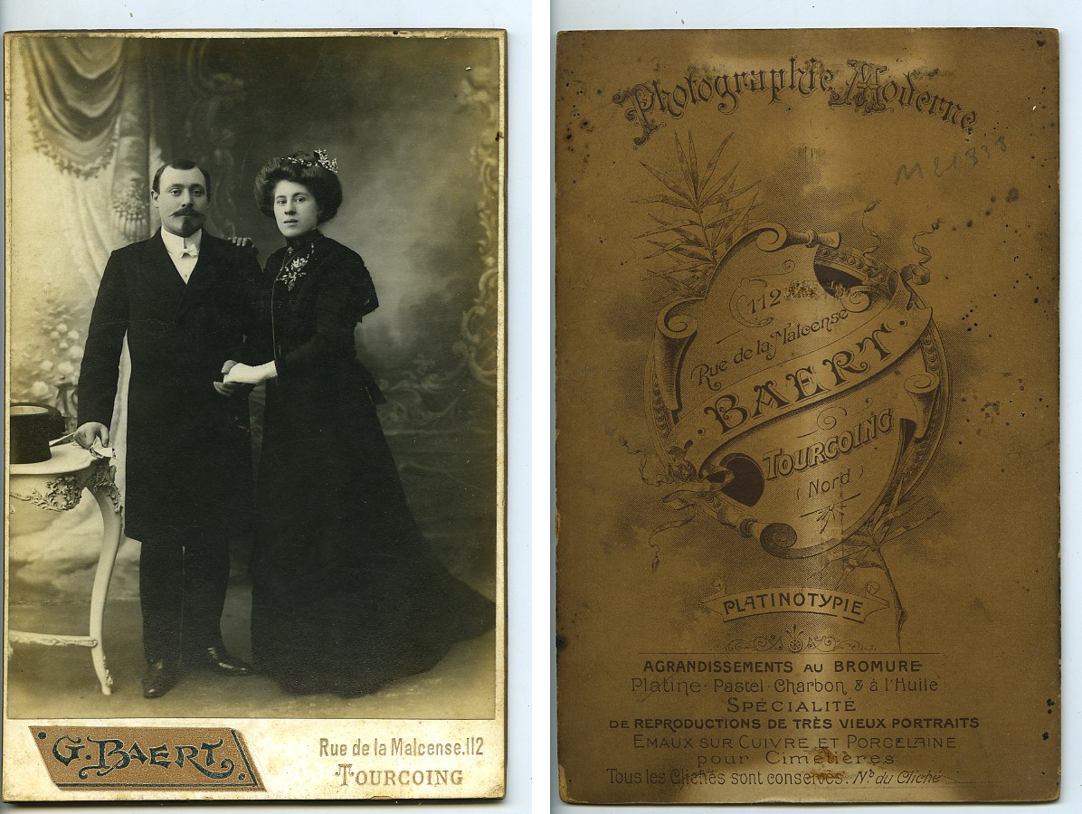 France Tourcoing Couple Portrait Wedding Old Cabinet Card Photo Baert 1900
